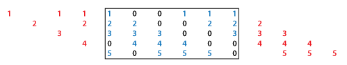 A, extra zeros are added at the bottoms of columns (as in the last column ofBout).