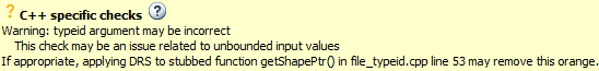 Follow one or more of these steps until you determine a fix for the Invalid C++ specific operations check. There are multiple ways to fix a red or orange check. For a description of the check and code examples, see Invalid C++ specific operations.