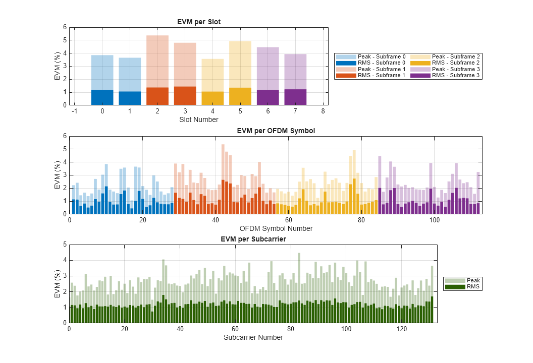 EVM per OFDM symbol: EVM averaged over each OFDM symbol.