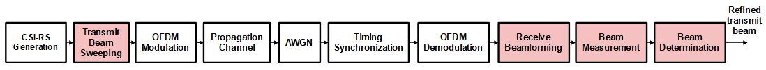 After the OFDM demodulation, the UE measures the RSRP for all the CSI-RS resources transmitted in different beams, given the current receive beam. Perform these measurements by using the nrCSIRSMeasurements function.