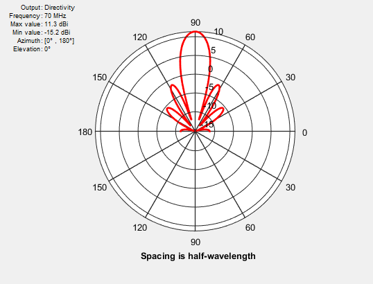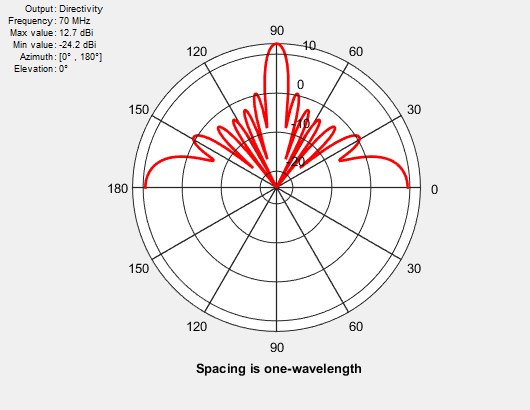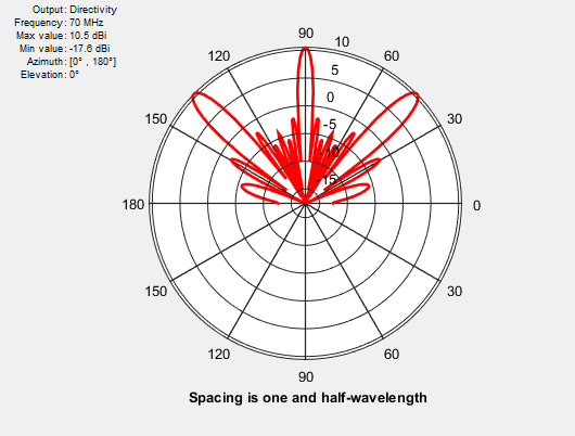 When you increase the element spacing to one wavelength, the number of side lobes increases.