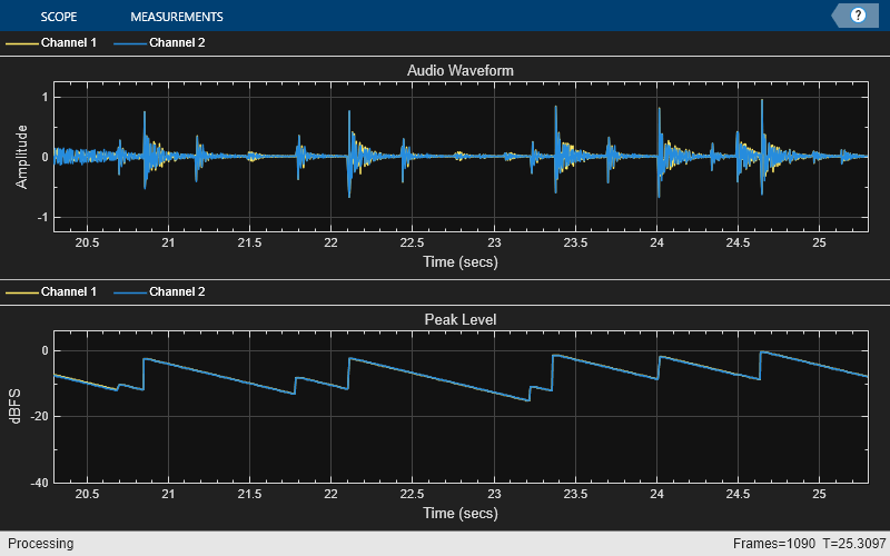 level meter System object with default property values.lvlMeter = audioLevelMeter