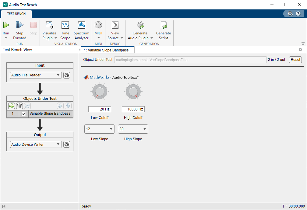 The Audio Test Bench provides a graphical interface through which