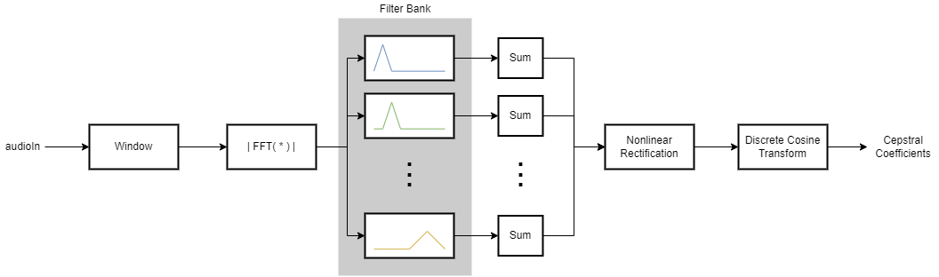 mel-frequency cepstral coefficients for the audio input signal sampled at