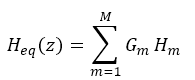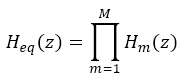 A different implementation of the graphic equalizer uses cascaded equalizing filters (peak or notch) implemented as biquad filters. The transfer function of the equalizer can be written as a product of the transfer function of individual biquads.