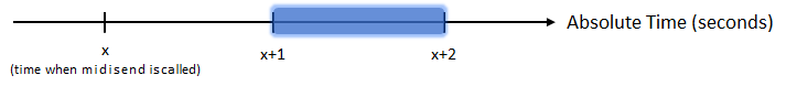 midisend, timestamps are interpreted as when to send the message.If there have been no recent calls to