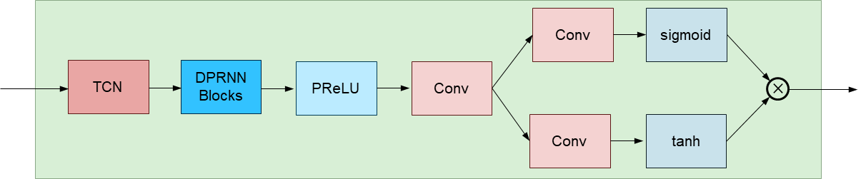 The beamformer module follows the design of [1] except replaces the stacked TCN blocks with stacked DPRNN blocks.
