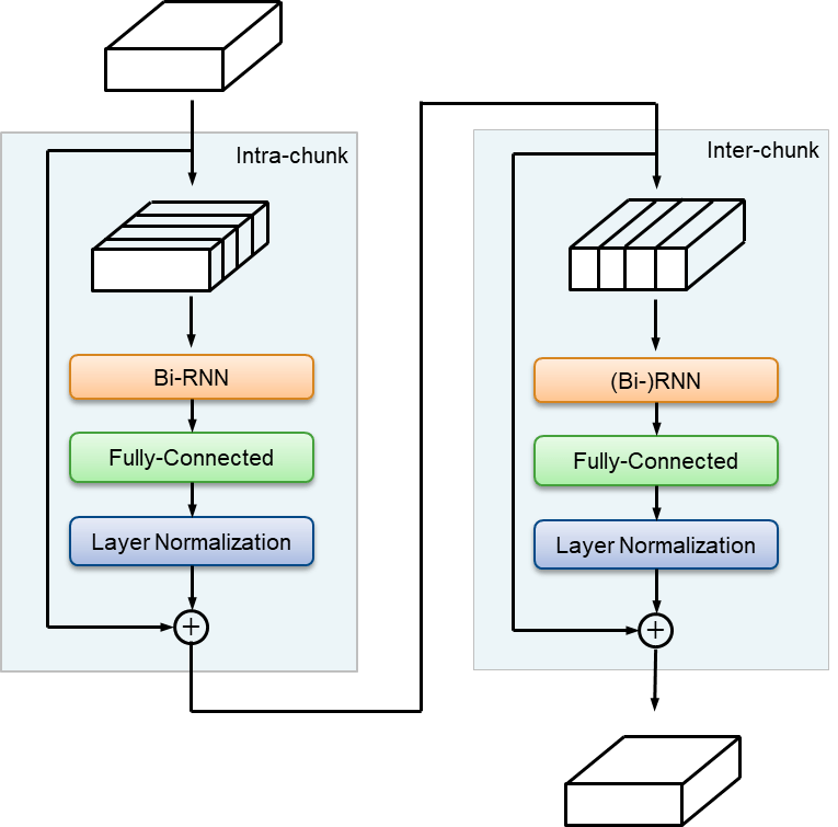 [4] Luo, Yi, et al. "Dual-Path RNN: Efficient Long Sequence Modeling for Time-Domain Single-Channel Speech Separation." ICASSP 2020 - 2020 IEEE International Conference on Acoustics, Speech and Signal Processing (ICASSP), IEEE, 2020, pp. 46–50. DOI.org (Crossref), https://doi.org/10.1109/ICASSP40776.2020.9054266.