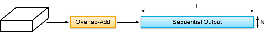 The output from the stacked DPRNN blocks is overlapped and added to reconstruct the sequence data.