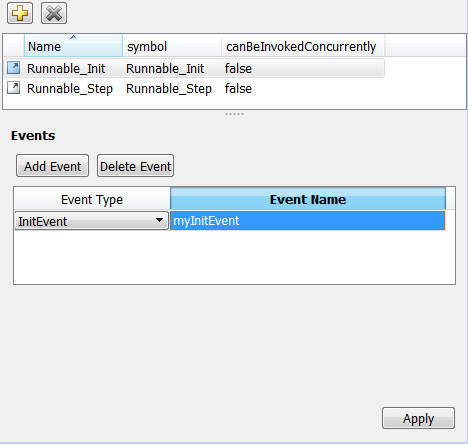 InitEvent, and specify the Event Name. In this example, initialization eventmyInitEventis configured for runnableRunnable_Init.