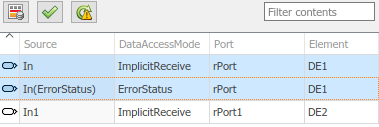 For example, if you create an AUTOSAR receiver port in Simulink®, you use the Code Mappings editor to map a Simulink® inport to the AUTOSAR receiver port and a sender-receiver data element. You can then select the port and specify its ComSpec attributes.