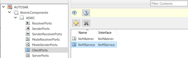 interfaces, operations, and ports, and maps each Simulink function caller to an AUTOSAR client port and operation.For example, for the NvMServiceCaller block in this example, for which the