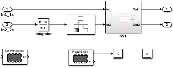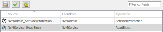 /* FunctionCaller: '<Root>/NvMServiceCaller' */ Rte_Call_NvMService_ReadBlock(&rtDW.A); ... /* FunctionCaller: '<Root>/NvMAdminCaller' */ Rte_Call_NvMAdmin_SetBlockProtection(false);