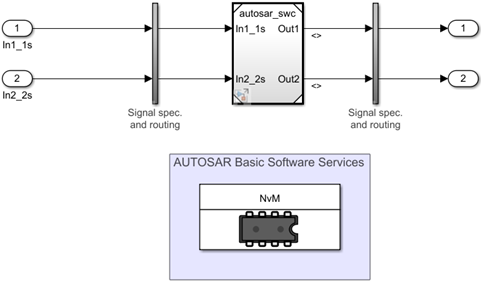 ReadBlockandSetBlockProtectionservice operations.The AUTOSAR Basic Software block library provides an NVRAM Service Component block, which provides reference implementations of NvM service operations. You can manually insert the block into a containing composition, system, or harness model, or automatically insert the block by creating a Simulink Test™ harness model.