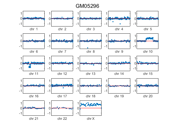 You can also plot the profile of each chromosome in a genome. In this example, you will display the log2 intensity ratios for each chromosome in cell line GM05296 individually.