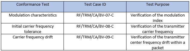 Bluetooth BR RF-PHY Transmitter Tests for Modulation Characteristics, Carrier Frequency Offset, and Drift