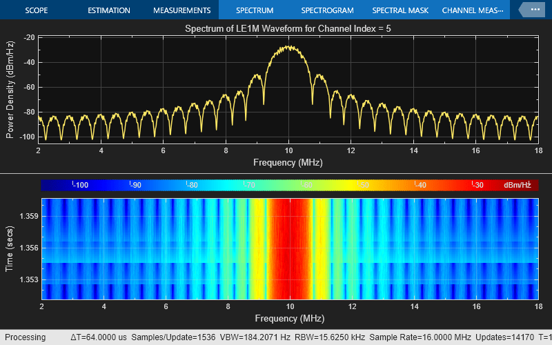 timeScopeVis.Title = "Bluetooth LE " + phyMode + " Waveform for Channel Index = " + num2str(channelIndex);