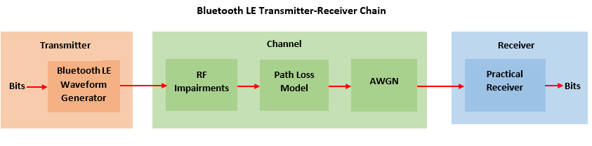 In past few years, there has been a significant increase in designing Bluetooth LE networks for a plethora of use case scenarios. To achieve high performance and quality in the Bluetooth LE network, studying the propagation of the Bluetooth LE signal along the link between the transmitter and the receiver is recommended. This example shows an end-to-end Bluetooth LE simulation considering these factors that impact the propagation of Bluetooth LE signals along the communication link between the transmitter and receiver.