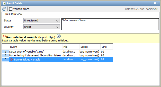 For a similar workflow in the Polyspace Access™ web interface, see Interpret Bug Finder Results in Polyspace Access Web Interface (Polyspace Access).