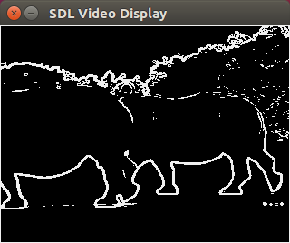 function videoReaderDeploy() % Create Jetson hardware object hwobj = jetson(); vidName = '/home/ubuntu/Videos/rhinos.avi'; % Create video reader object vObj = VideoReader(hwobj,vidName,'Width',320,'Height',240); % Create display object on the target dispObj = hwobj.imageDisplay; % Grab frame from the video pipeline while vObj.hasFrame img = vObj.readFrame(); % Sobel edge detection kernel = [1 2 1;0 0 0;-1 -2 -1]; h = conv2(img(:,:,2),kernel,'same'); v = conv2(img(:,:,2),kernel','same'); e = sqrt(h.*h + v.*v); edgeImg = uint8((e > 100) * 240); % Display edge detected image image(dispObj,edgeImg); end end