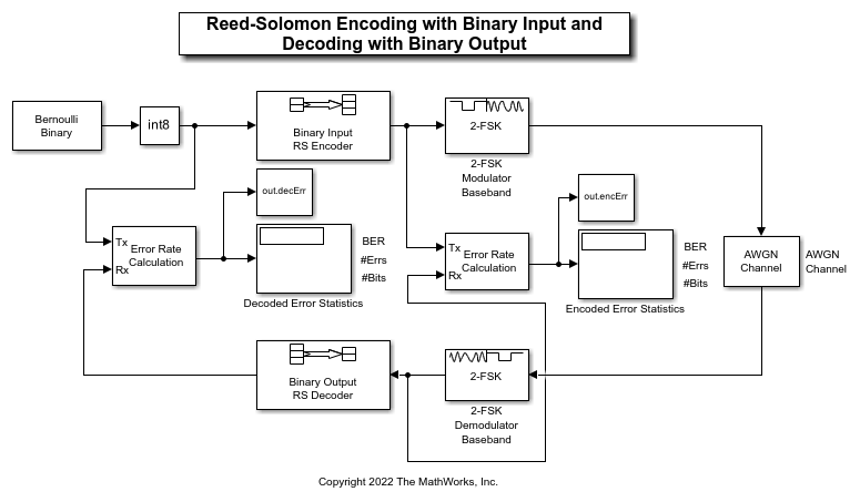 The Binary-Input RS Encoder block creates a Reed-Solomon code.