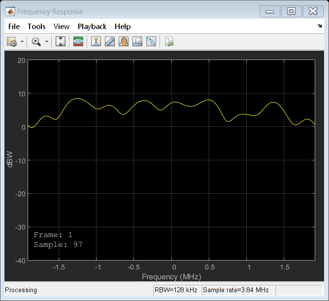 requires no input signal and acts as a source of path gains.pathgains = rayleighchan()