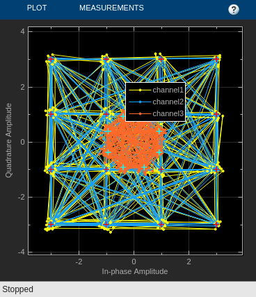 The Constellation Diagram block displays real- and complex-valued floating- and fixed-point signals in the IQ plane. Use this block to perform qualitative and quantitative analysis on modulated single-carrier signals. Specifically, the IQ-plane displays the in-phase and quadrature components of modulated signals on the real and imaginary axis of an xy-plot.