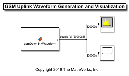Model a GSM waveform generator in Simulink® by using the MATLAB® Function block and Communications Toolbox™ functions.