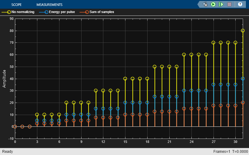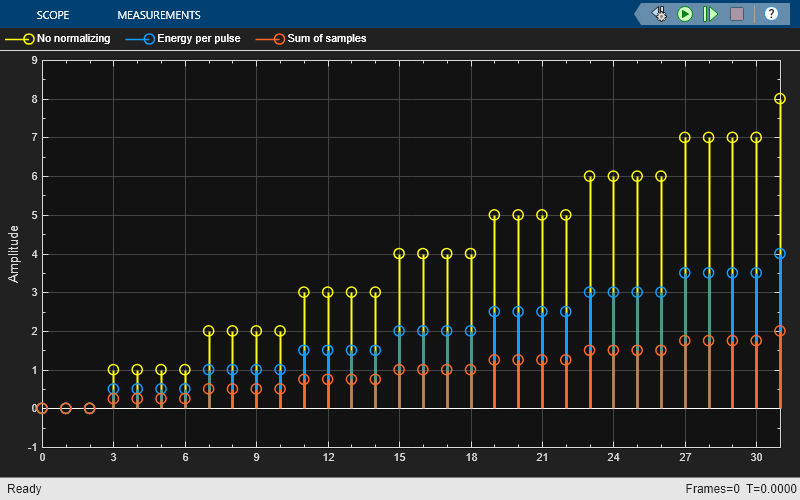 Sum of samples, the sum of the samples in each pulse equals the original input value that the block replicated. Effectively, the block uses a rectangular pulse with amplitude of (1 / L), where L is the pulse length.When you set the Normalization method parameter to
