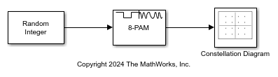 A Random Integer Generator block generates a vector of integers over the range [0, M-1] as input for a modulator that applies M-PAM.