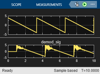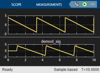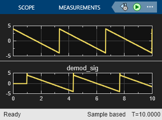The analog modulation Simulink® blocks in Communications Toolbox™ process only sample-based scalar signals. The analog modulator and demodulator accept real-valued input signals and return real-valued output signals. The analog demodulator blocks return discrete-time (not continuous-time) output.