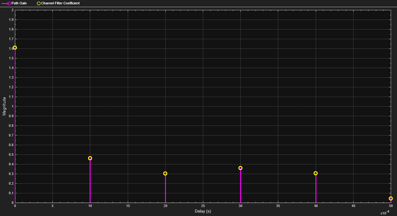 By convention, the delay of the first path is typically set to zero. For subsequent paths, a 1 microsecond delay corresponds to a 300 meter difference in path length. The path delays and path gains specify the average delay profile of the channel.