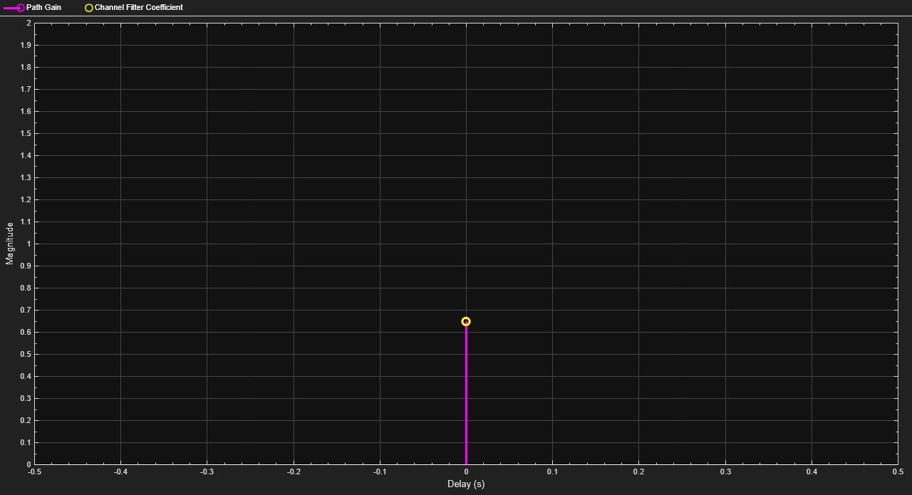 The next plot shows the impulse response for a frequency-flat channel. A frequency-flat channel is represented by a single coefficient; no interpolation is required.