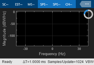 Instantaneous Frequency block — Displays the instantaneous frequency of the signal. The CPM phase is differentiated to produce the frequency deviation of the signal. Viewing the CPM frequency signal enables you to observe the frequency deviation qualitatively, as well as make quantitative observations, such as measuring peak frequency deviation.