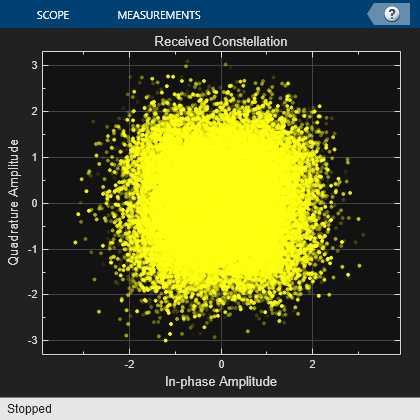Furthermore, this model has blocks for measuring and displaying the packet error rate, LDPC bit error rate, and estimated Es/No. There is also a scatter plot scope displaying the received signal, which helps users visualize the channel distortions of the signal.