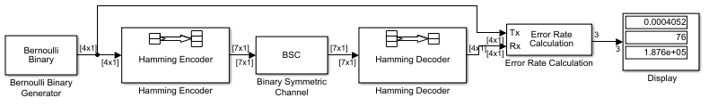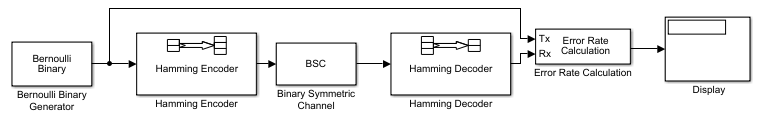 Block coding is a special case of error-control coding. Block-coding techniques map a fixed number of message symbols to a fixed number of code symbols. A block coder treats each block of data independently and is a memoryless device. Communications Toolbox contains block-coding capabilities by providing Simulink® blocks, System objects, and MATLAB® functions.