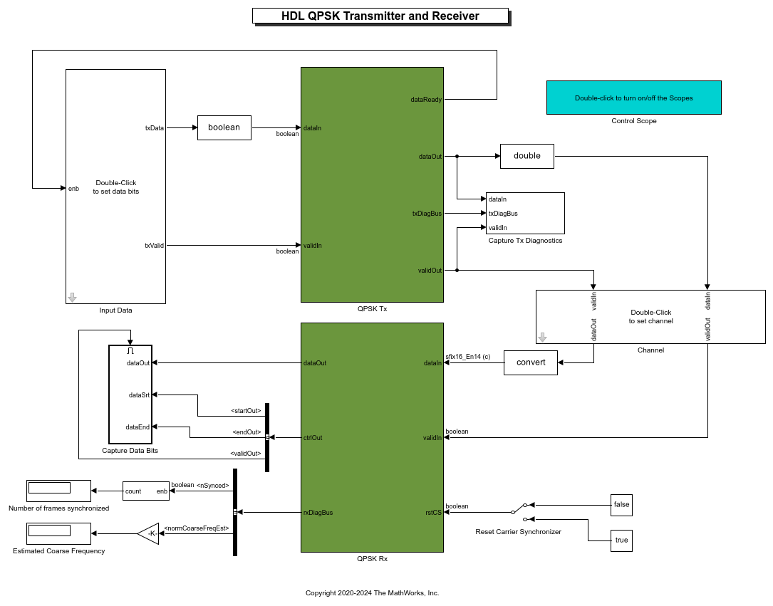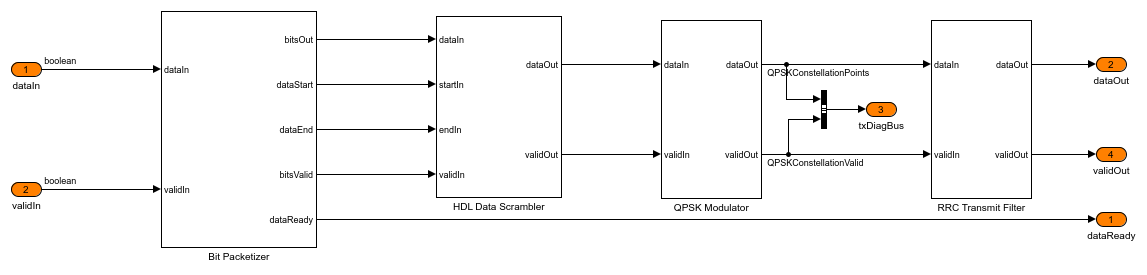This example shows how to implement a QPSK transmitter and receiver in Simulink® that is optimized for HDL code generation and hardware implementation.