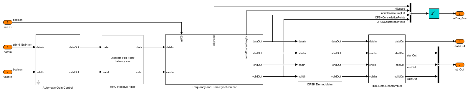 This figure shows the top-level overview of the QPSK Rx subsystem.