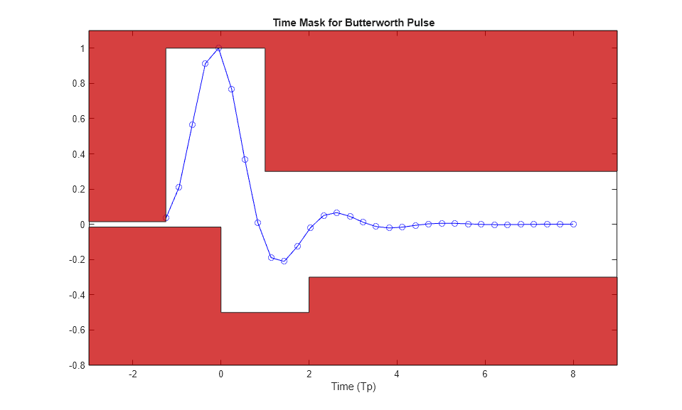 The IEEE 802.15.4z amendment specifies that transmitted pulses conform to the time-domain mask shown in Fig. 15-13a of [ 2 ]. The Butterworth pulses used in this example comply with the transmit mask recommendation.