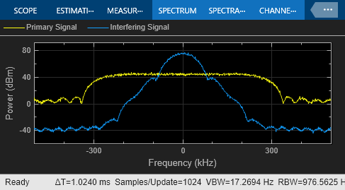 See Adjacent and Co-Channel Interference example to model the effects of adjacent and co-channel interference on a signal.