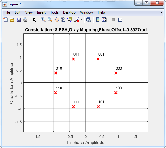 This 8-PSK constellation uses Gray-coded symbol mapping.