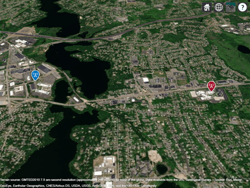 Display the sites in Site Viewer. Site Viewer displays geographic sites on an interactive 3-D globe. You can customize the propagation environment of the 3-D globe by using DTED terrain and OpenStreetMap® buildings.
