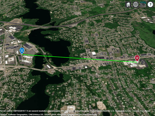 tx = txsite("Latitude",42.3001,"Longitude",-71.3504); rx = rxsite("Latitude",42.3021,"Longitude",-71.3764);