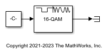 For these linear modulator blocks, clicking View Constellation on the block mask plots the signal constellation using the applied block settings. Use the cm_view_modulator_constellation model to create constellation figures by clicking View Constellation. This model uses the Rectangular QAM Modulator Baseband block with the modulation order set to the workspace variable M. The value for M is specified in the PreLoadFcn callback function. To view the callback, select MODELING, SETUP, Model Settings, and then Model Properties. In the Model Properties window, select Callbacks, and then PreLoadFcn.
