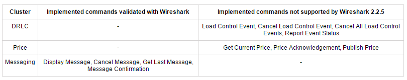 Out of the 7 clusters used in the Smart Energy application profile, this example generates and decodes frames for the following clusters: