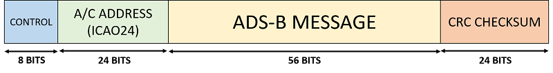 The initial eight bits of any Mode S signal are the control bits. These bits contain information on the downlink format (DF), which is used to describe which type of Mode S message is being received. For Mode S ES, the value of the DF must be equal to 17. This is followed by the ICAO24 code, which is a unique 24-bit aircraft identification code. The additional 56 bits of information included in a Mode S ES Signal make up what is known as the ADS-B message.