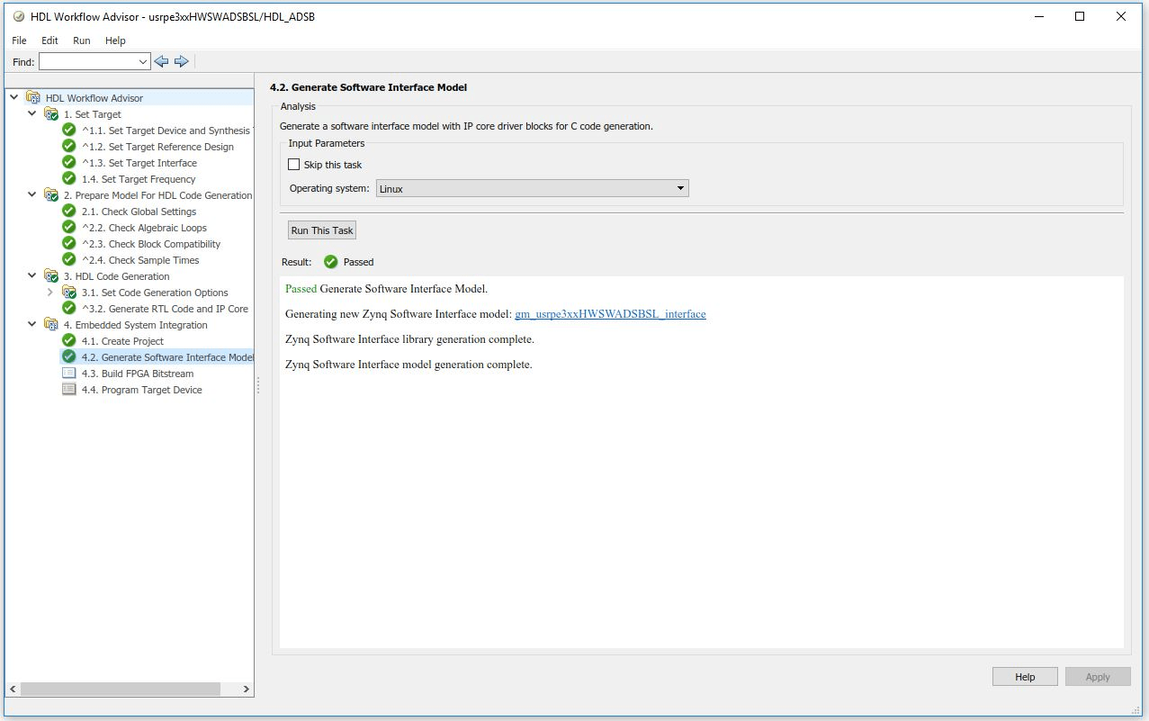 A software interface model has been provided that shows how you could modify the generated model to set it up for the ADS-B Mode S example. This interface model will allow you to run the model in Monitor & Tune mode or fully deployed.