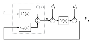 For 2-DOF PID controller types such as PI2, PIDF2, and I-PD, the software computes responses based upon the following architecture: