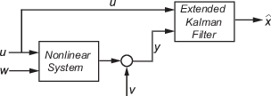 Consider a plant with states x, input u, output y, process noise w, and measurement noise v. Assume that you can represent the plant as a nonlinear system.