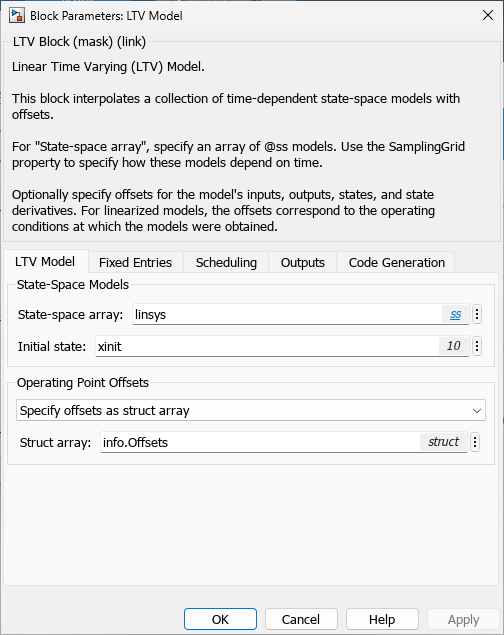 Introduced in R2024aThe LTV System block now allows you to specify initial state values at